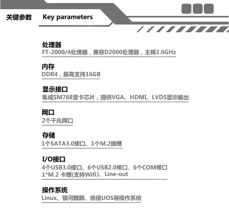 研為助力國產替換,可提供支持飛騰、兆芯、龍芯等國產處理器的工控機或工業主板,產品具有極佳的兼容性、運算力和存儲能力。I/O接口豐富,支持國產自主安全固件、國產操作系統、國產數據庫以及安全可信模塊。為客戶提供軟硬件整合服務,降低客戶管理成本,為核心領域打造自主可控、通用性強的國產化解決方案。